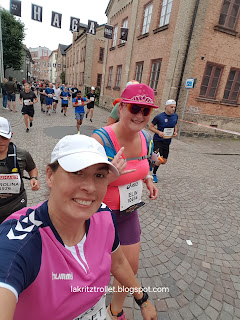På Postgatan tyckte jag mig känna igen en annan löpare. Jag konfronterade personen och hade rätt. Det var Johanna Gren (johanna_running), en annan imponerande person löparmässigt. Hon och hennes familj är en riktig löparfamilj, de springer MÅNGA maraton. Bara Johanna ensam har sprungit över 500 stycken. (Detta var hennes 570:e maraton.) Då ska man veta att Johanna är runt 30 år. Även hon sprang Helsingborg Marathon igår, men då som farthållare.